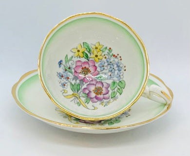 Pretty in Pink-Royal Albert 1930s Green and White Floral Teacup and Saucer