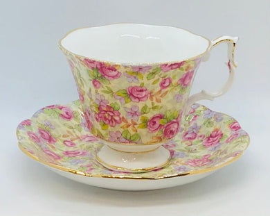 SOLD! Pretty in Pink-Royal Albert Pink Rose Chintz Pedestal Teacup and Saucer