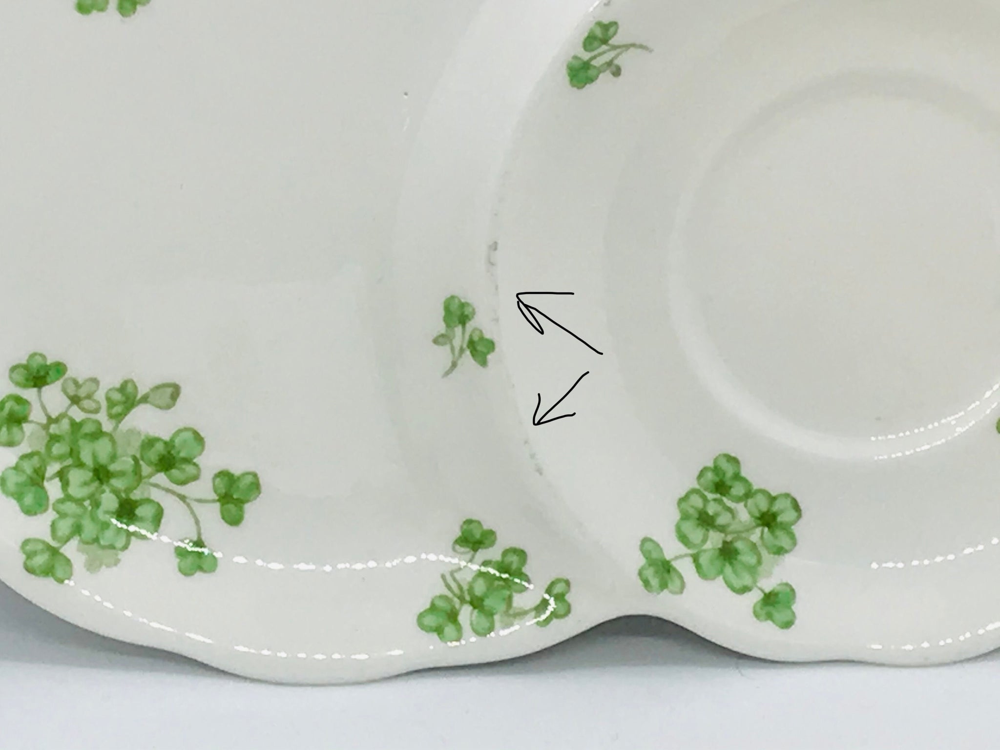Excellent vintage condition with no cracks, crazing, chips or repairs. There is a bit of rubbing on the lip between the snack plate and saucer-it looks more pronounced in the photo because I zoomed in. Both pieces ping nicely. Please examine the items with the zoom lens feature and ask for more photos if concerned.