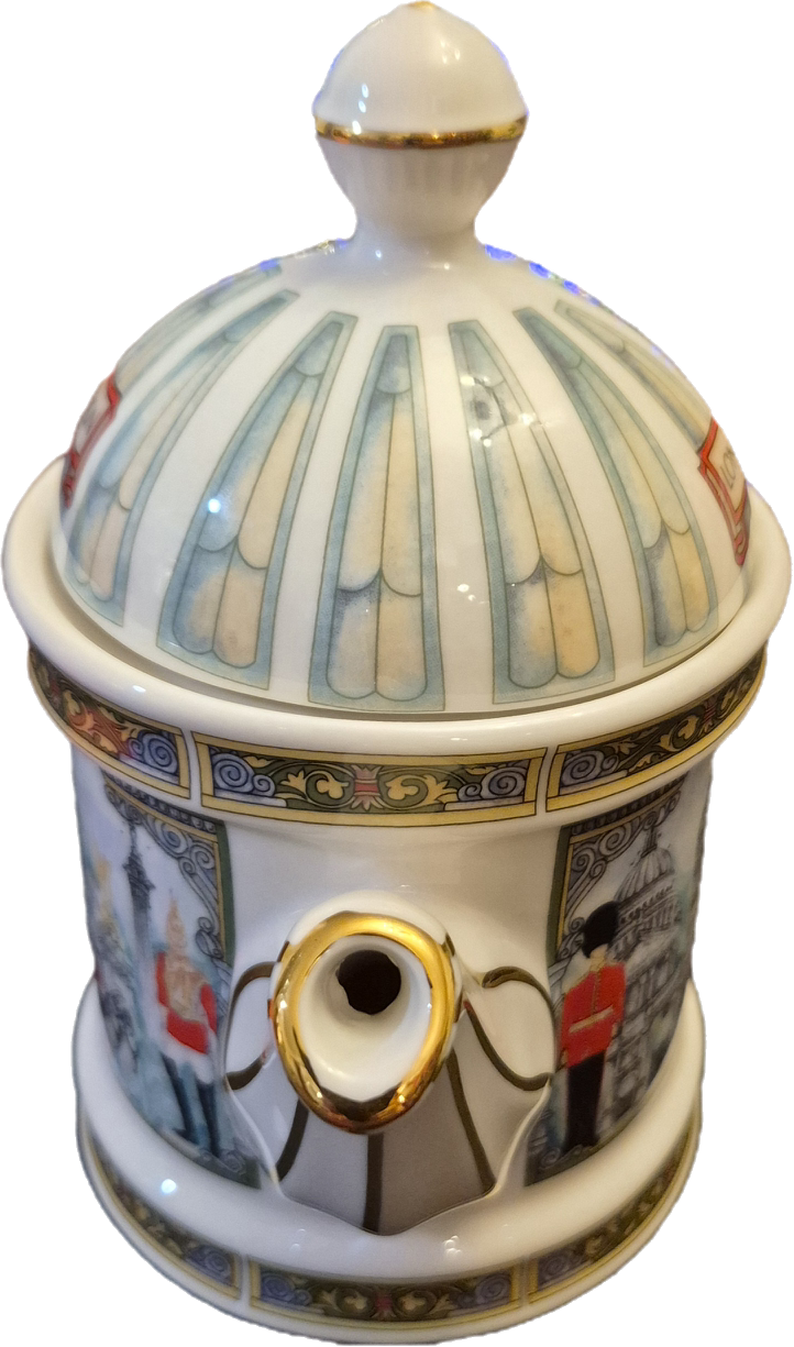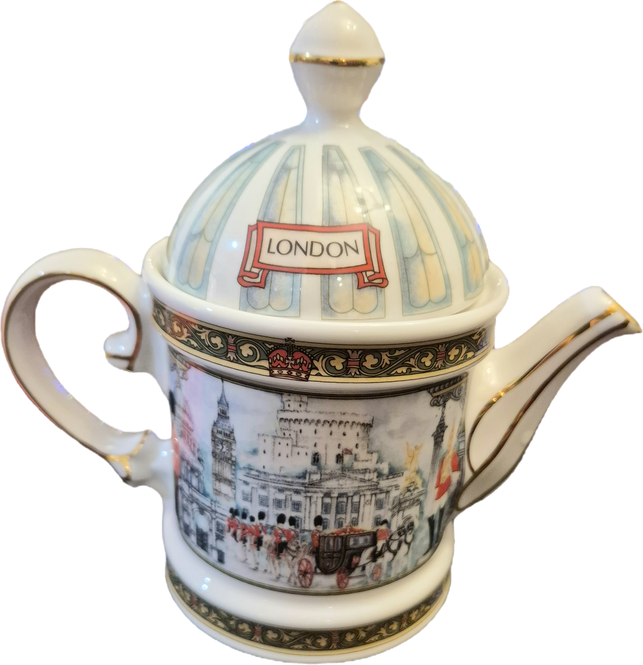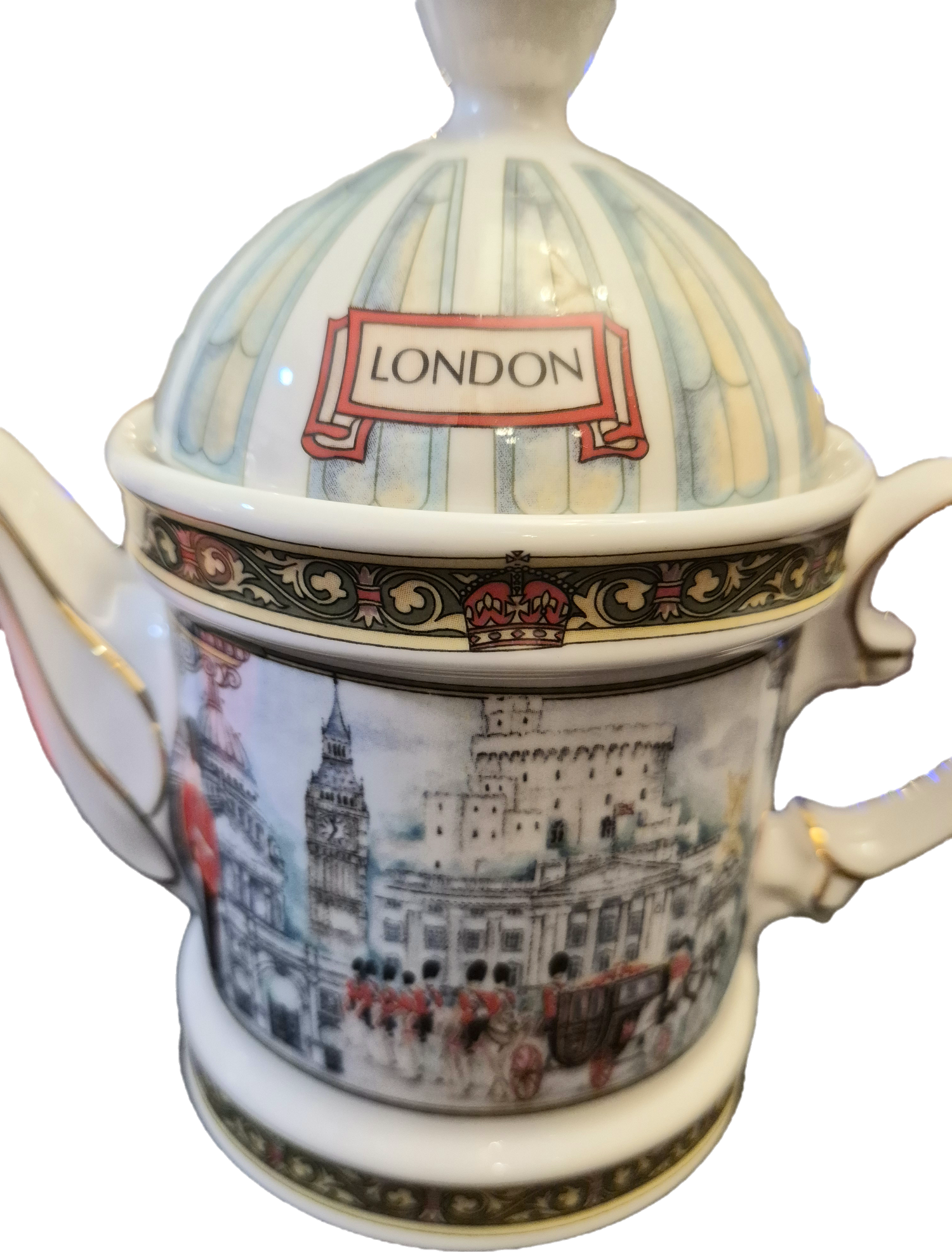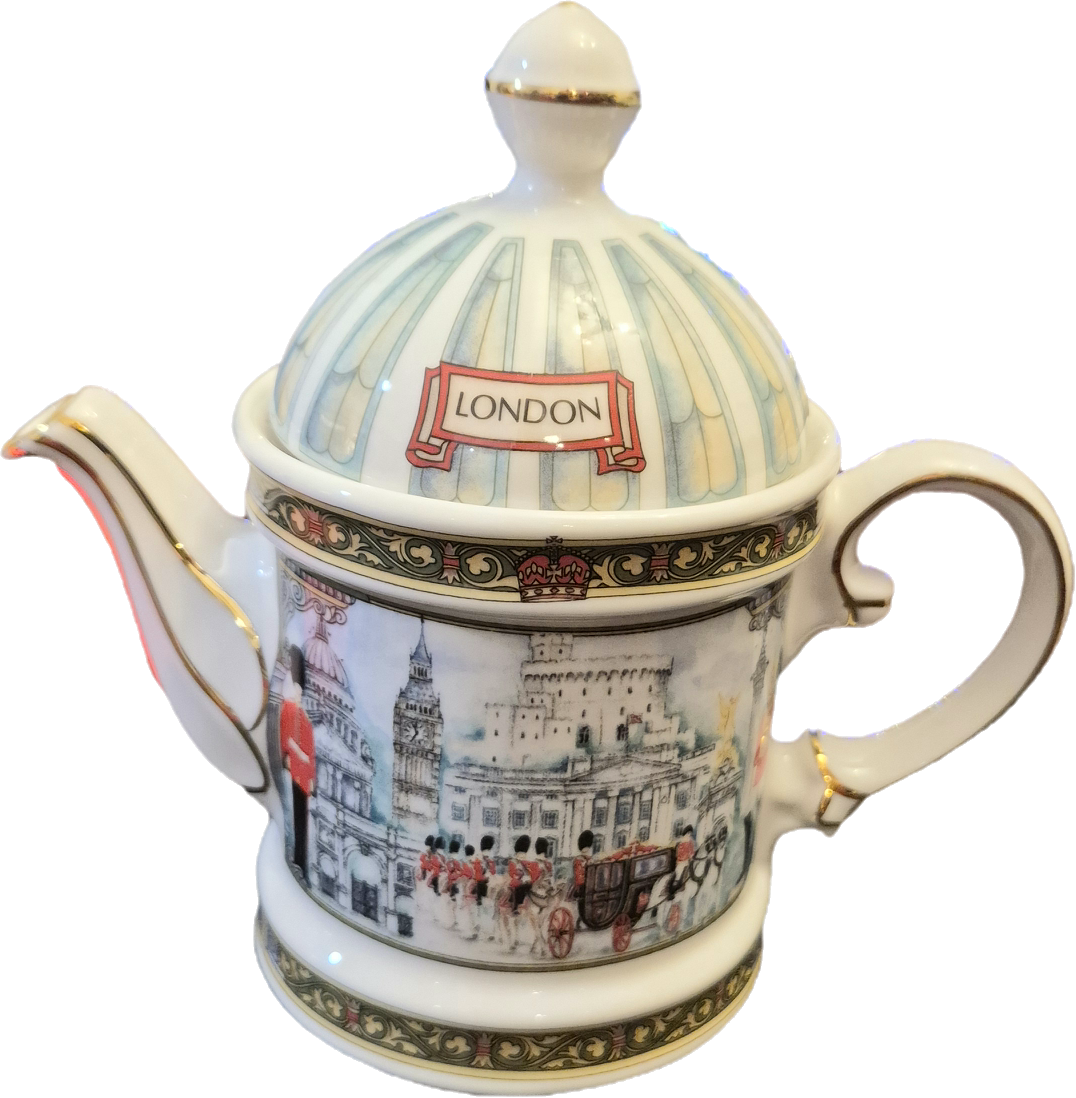A lovely collectable James Sadler 2 cup London teapot in the Horseguards pattern.Gorgeous, vivid colouring and design. Made in England.